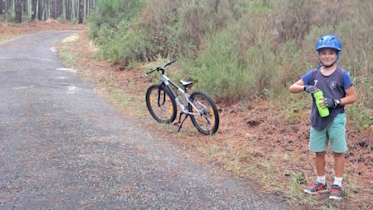 Dit manneke van 8 jaar op de foto haalde mij verschillende keren in, in de beboste duinen. Bij 't inhalen keek hij telkens stralend om zo van: “ik heb jou weer te pakken”:-)