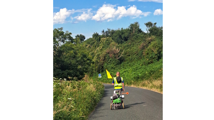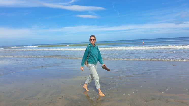 De foto' s : met dochter Annemieke dagje strand/ wandelaar met karretje tocht 800km/